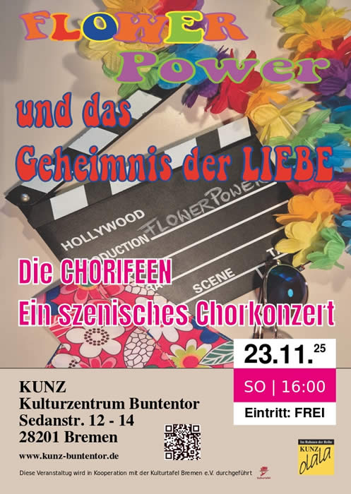Mit den CHORIFEEN gerät man mitten hinein in letzte Dreharbeiten für die aktuelle Produktion „FLOWER POWER und das Geheimnis der LIEBE“.